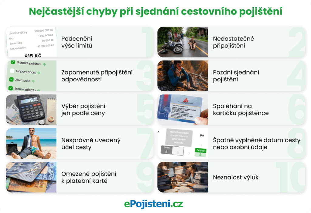 V mnoha zemích je minimální úroveň pojištění povinná a bez něj nelze legálně vstoupit na území. Moderní pojistné produkty často nabízejí širší krytí, včetně asistence při poruše, náhradního dopravního prostředku nebo lékařské pom