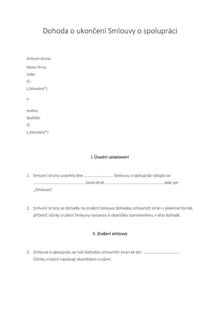 Dohoda o ukončení smlouvy o spolupráciZákonné základy smlouvy o sdružení v České republice
