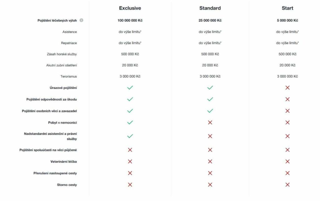 Kromě toho zahrnuje odškodnění za ztrátu nebo poškození zavazadel, zrušení cesty z objektivních důvodů, prodlev u dopravce či ztrátu občanského průkazu. Toto rozsáhlé krytí poskytuje pojistnou ochranu na většině destinací světa, včetně Schengenského prostoru a mimo něj, podle typu zvoleného balíčku.