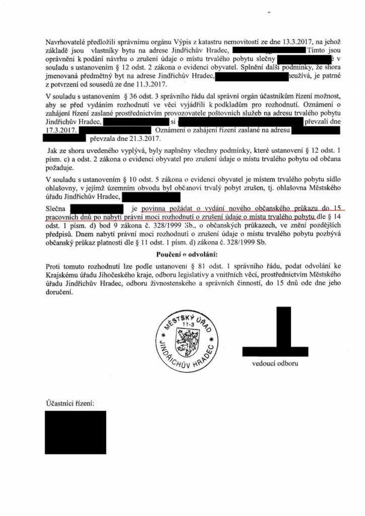 O změnu trvalého bydliště musí být úřad oznámen do pěti pracovních dnů ode dne, kdy osoba vešla v užívání nového bytu či domu. Tato lhůta je stanovena zákonem a její nedodržení m