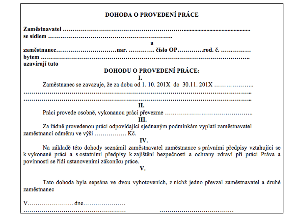 Smlouva dohoda o provedení práceSmlouva dohoda o provedení práce